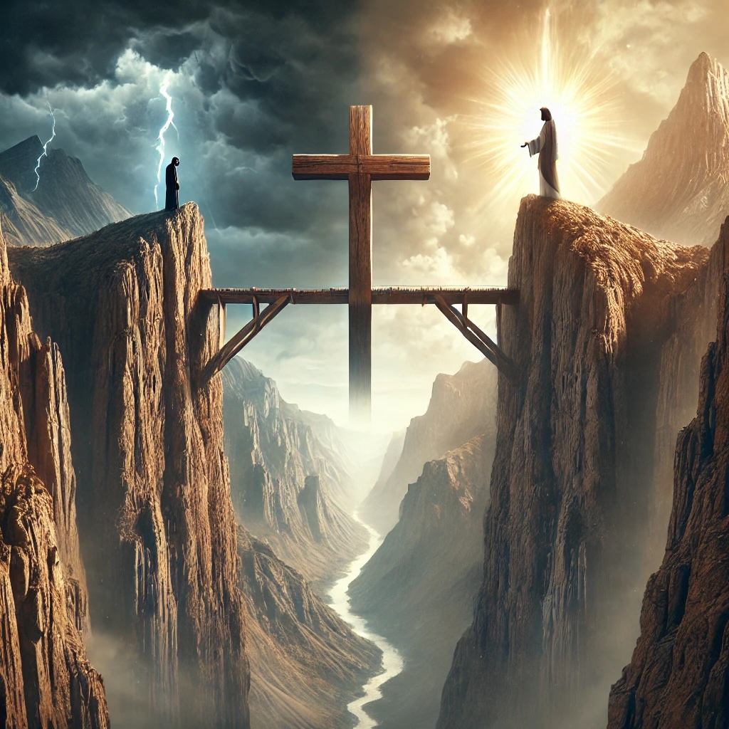 Gott hat durch sein Handeln die Kluft überbrückt, die uns von ihm trennt; er sandte seinen Sohn Jesus Christus, damit er stellvertretend für uns sterben sollte.
